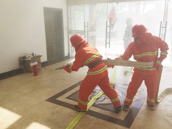 此次演練意在檢驗(yàn)消防應(yīng)急組織機(jī)構(gòu)的運(yùn)行狀況,滅火行動組對滅火器、室內(nèi)消火栓等消防器材的熟練掌握程度,