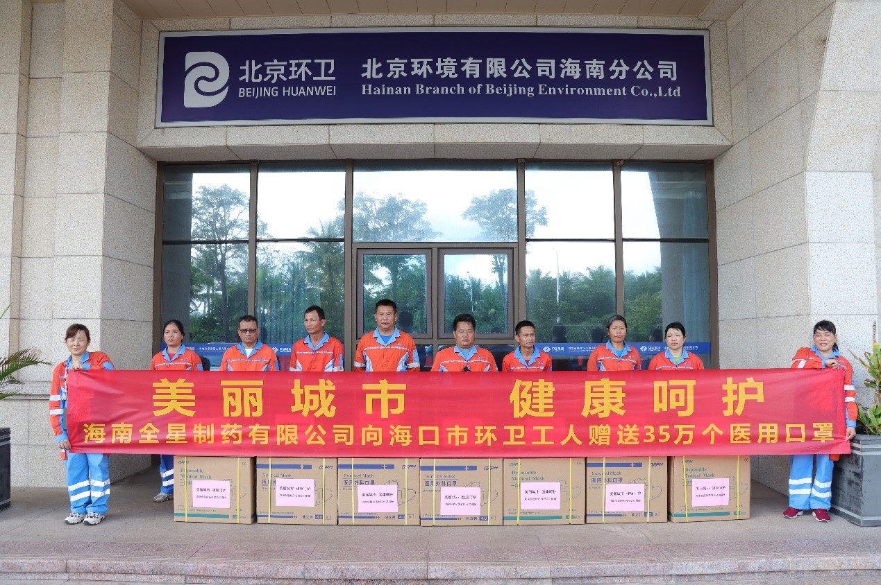 海南全星制藥有限公司向海口市環(huán)衛(wèi)工人贈(zèng)送35萬(wàn)個(gè)醫(yī)用口罩